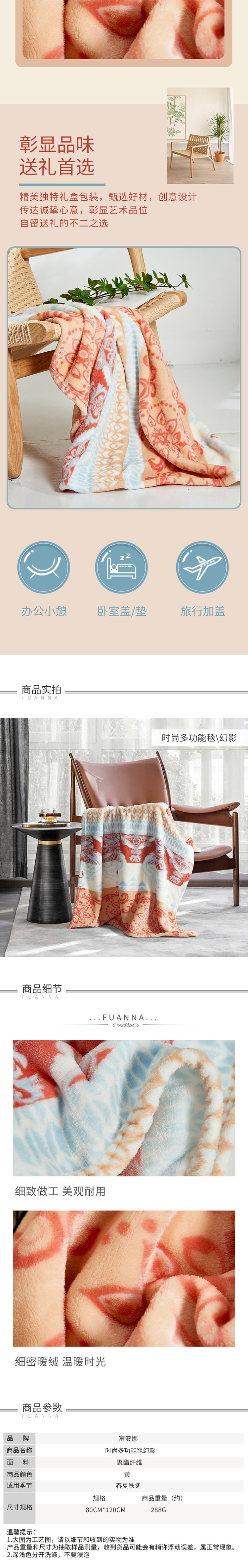富安娜 法兰绒毛毯 80*120cm